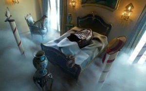 May 2013 – Gondola Adventures provided an authentic Venetian gondola for a still photo shoot in Malibu. The gondola was photographed crashing into a mansion, complete with a smoke machine and a live leopard on deck. Gondola, custom-striped oar, striped poles, and gondolier’s hat were provided by Gondola Adventures.