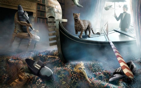 May 2013 – Gondola Adventures provided an authentic Venetian gondola for a still photo shoot in Malibu. The gondola was photographed crashing into a mansion, complete with a smoke machine and a live leopard on deck. Gondola, custom-striped oar, striped poles, and gondolier’s hat were provided by Gondola Adventures.